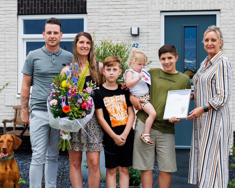 Zij werden in het zonnetje gezet door burgemeester Sacha Ausems. Het gezin kreeg toegangskaartjes voor het Schoenenkwartier, een cadeaukaart voor Theater De Leest en zwempassen om in zwembad Olympia of Zidewinde te zwemmen.