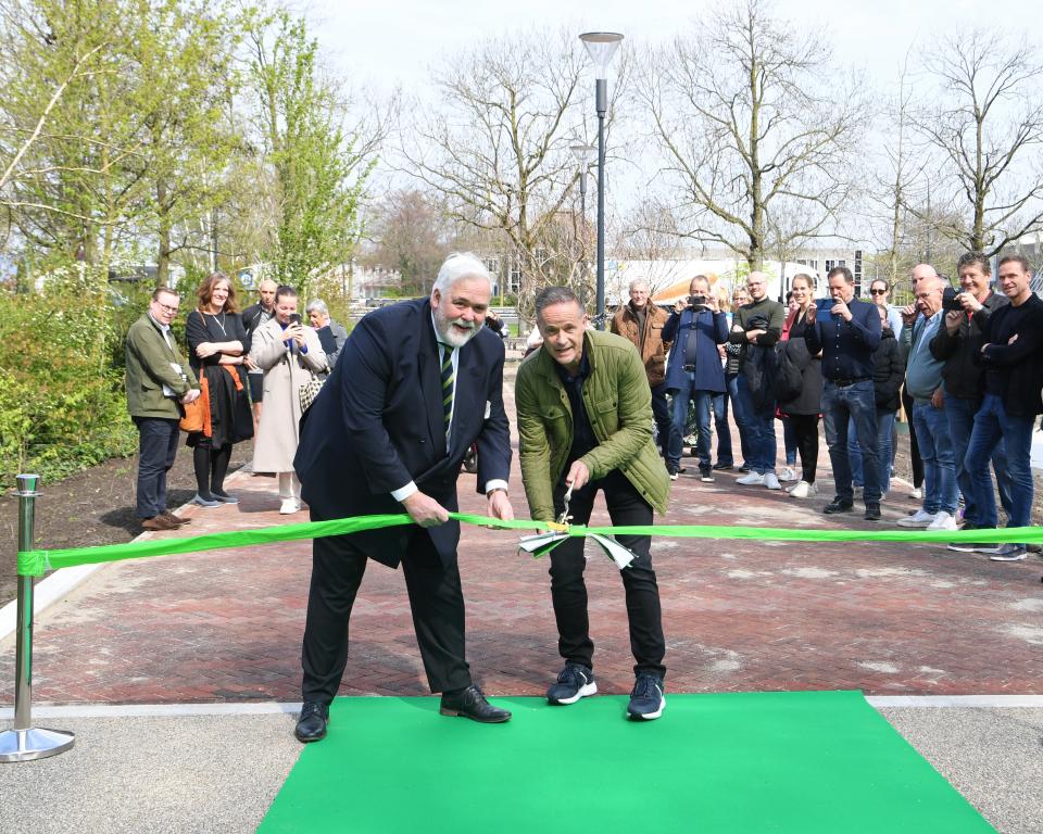 Het geheel werd muzikaal omlijst door de Flageolettes. Over de groene loper liepen alle aanwezigen vervolgens langs het Schoenenkwartier naar de Grotestraat. Deze nieuwe doorsteek maakt het centrum nog mooier en toegankelijker.