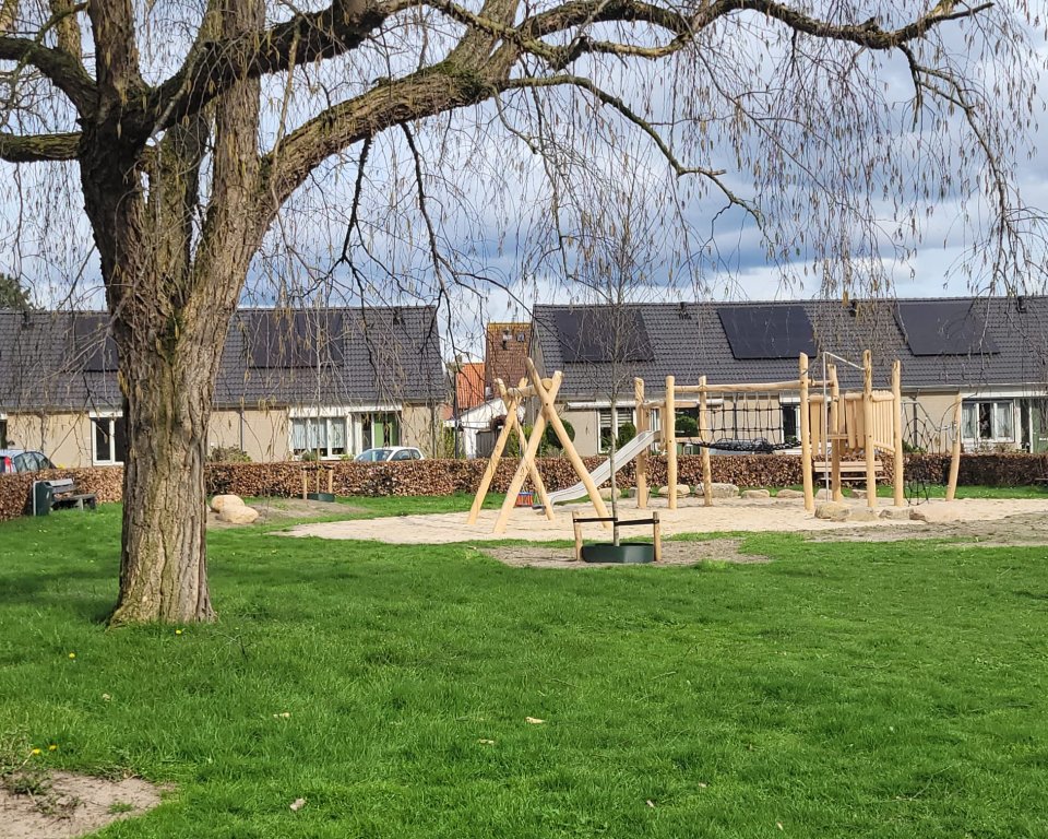 Goed nieuws! De speeltuin in de Haverkamp in Waspik hebben we een gloednieuwe look gegeven! We hebben de oude speeltoestellen vervangen door nieuwe en de rubberen tegels door zand. Ook hebben we de omgeving opgeknapt met speelheuveltjes en extra bomen.