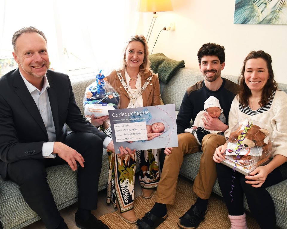 Noah Elias Astrida Bornai de Bont is de eerste baby van het nieuwe jaar uit de gemeente Waalwijk. Noah is op 1 januari in Tilburg geboren. Hij woont samen met moeder Charlotte en vader Danial in Sprang-Capelle. Burgemeester Sacha Ausems en Rabobank-directeur Dick van Rhee gingen op donderdag 25 januari op kraamvisite bij het gezin.