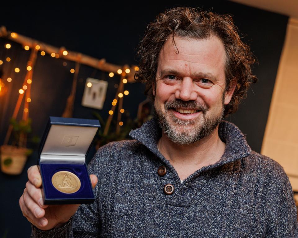 Burgemeester Sacha Ausems rijkte gisteravond de bronzen legpenning uit aan Peter Verhoef uit Waalwijk. Hij ontving de onderscheiding omdat hij in de zomer van 2021 een echtpaar van hun brandende boot heeft gered.
