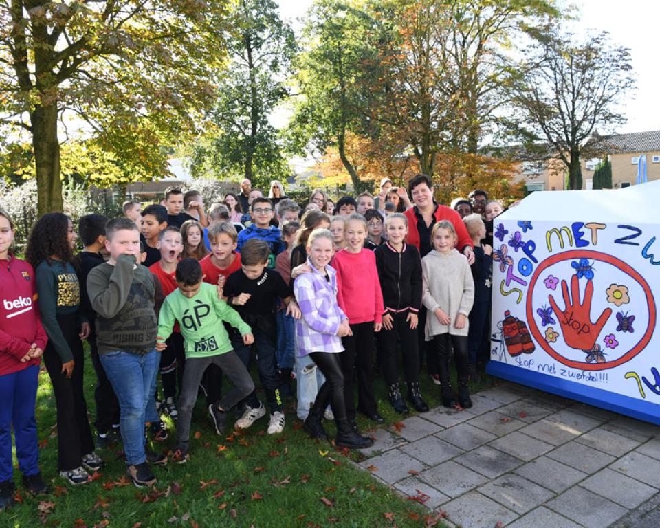 ‘Ruim je afval op, dan wordt de wereld weer top!’. Eén van deze kreten prijkt nu op de textielcontainer vlakbij de Pieter Wijten school en OBS de Hugo. Samen met de leerlingen van deze scholen willen we de hoeveelheid afval verminderen dat naast de containers in de Berkenlaan ligt. De leerlingen kregen eerst een gastspreker op bezoek die meer kwam vertellen over zwerfafval. Daarna gingen zij aan de slag met een opdracht om voor deze casus stickers met slogans te maken.