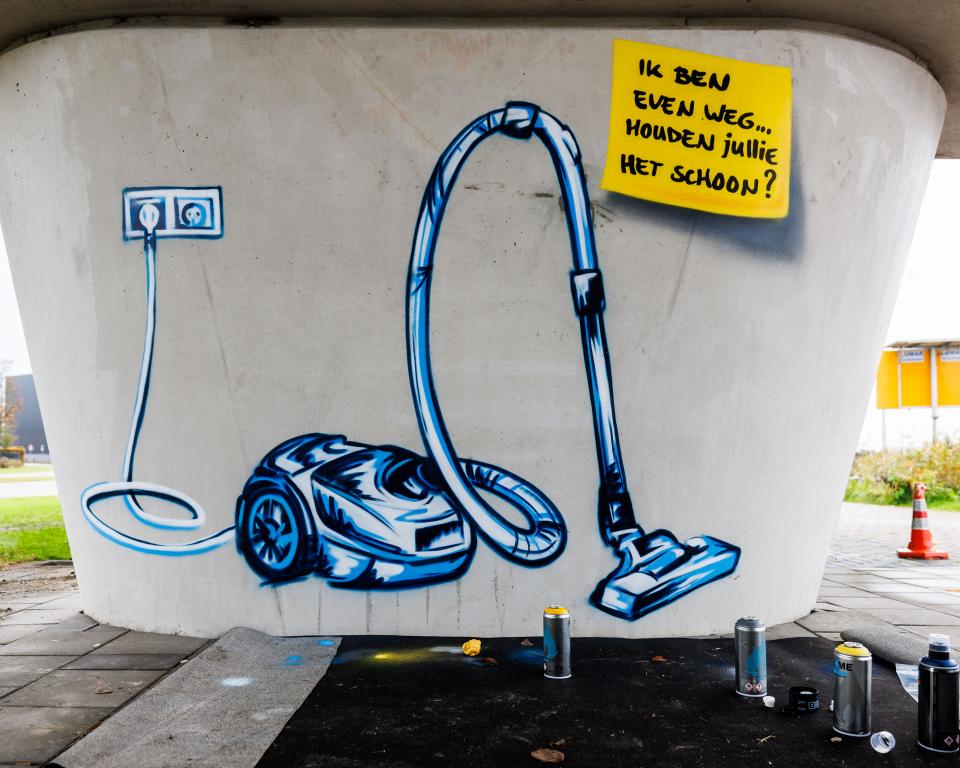We laten op een leuke manier zien wat de gevolgen zijn van je gedrag. Zodra je weet dat iemand jouw rommel achter je opruimt, hoe kun je dan nog rotzooi achterlaten? Met de schilderingen en de speciale afhaalzakjes brengen we dat in beeld. En in de blauwe kliko’s ruim je makkelijk zelf je afval op.