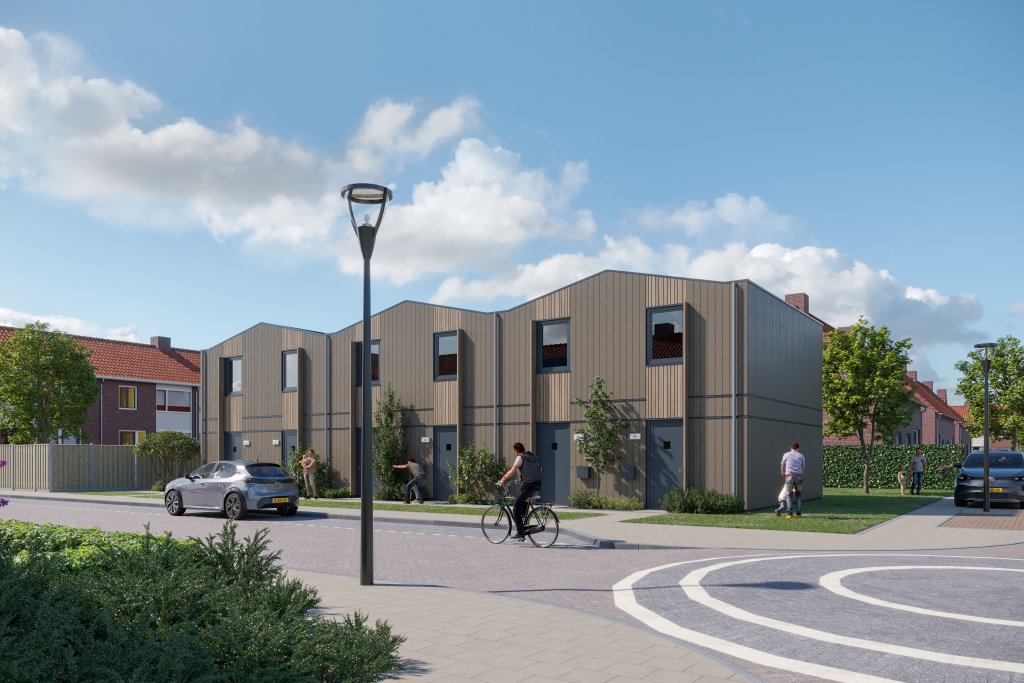 Aan de Molenhoek worden zes van deze modulaire houten woningen gerealiseerd. Dit maakt deel uit van een groter vernieuwingsproject, waarbij 58 gesloopte woningen worden vervangen door 81 nieuwe woningen in verschillende typen.