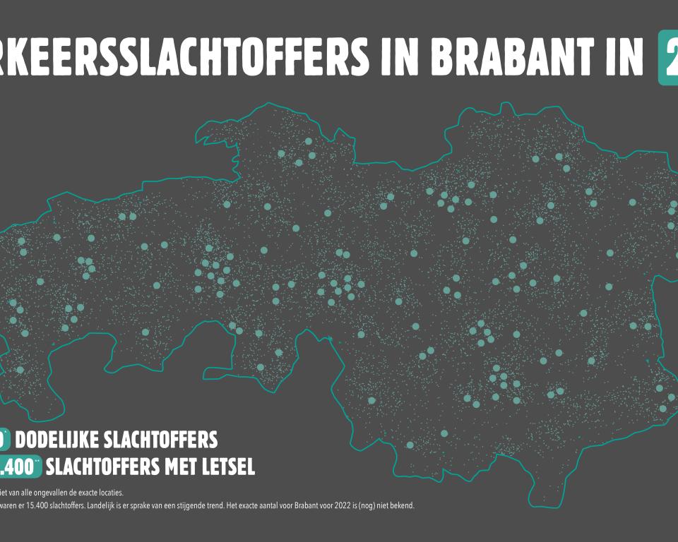 Het aantal verkeersdoden is het topje van de ijsberg. In 2021 belandden in Noord-Brabant meer dan 15.000 mensen op de spoedeisende hulp in het ziekenhuis naar aanleiding van een verkeersongeval. Volgens recente cijfers van VeiligheidNL is er een stijgende trend als het gaat om het aantal verkeersslachtoffers in Nederland. Met name fietsers blijken kwetsbaar.