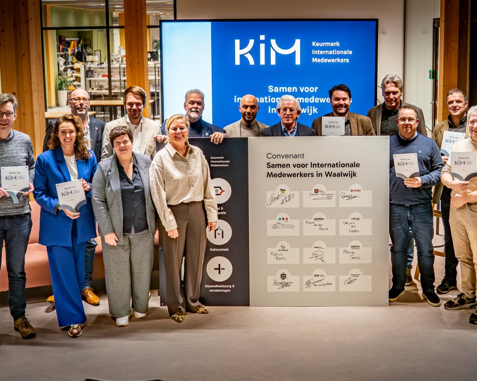 Op maandag 24 november 2025 zetten de gemeente Waalwijk en een brede groep werkgevers, inleners en huisvesters samen de stap om aan de slag te gaan voor internationale medewerkers (arbeidsmigranten). Tijdens een feestelijke bijeenkomst bij Baanbrekers werd het convenant getekend. Hierin liggen afspraken vast rondom internationale medewerkers in Waalwijk. De eerste partners ontvingen het Keurmerk Internationale Medewerkers (KIM). Een zichtbaar bewijs dat zij verantwoordelijkheid nemen voor goede woon-, werk- en leefomstandigheden van internationale medewerkers. Waalwijk is de eerste gemeente in Nederland met een convenant en keurmerk voor internationale medewerkers.